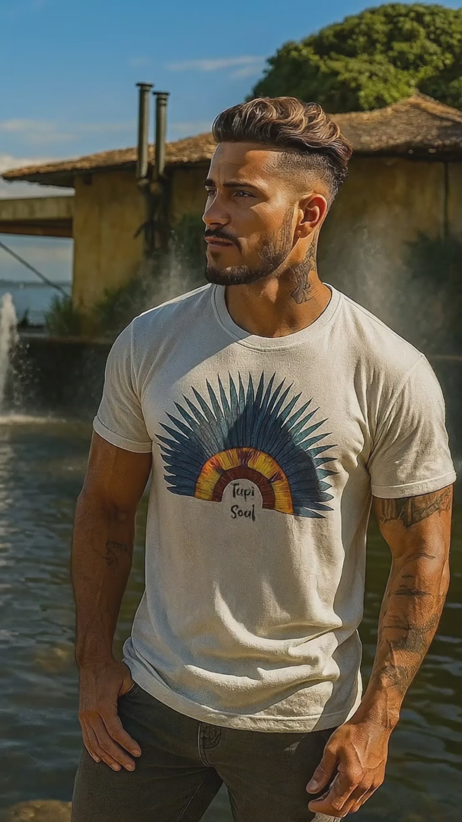 Desperte Seu Espírito: Camiseta Cocar Penas Azuis